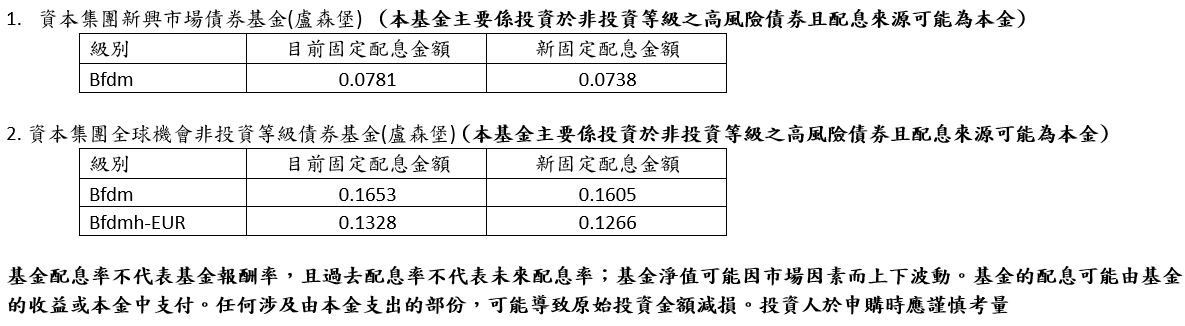 資本集團基金配息政策調整通知