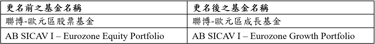 「聯博-歐元區股票基金」變更中英文名稱事宜