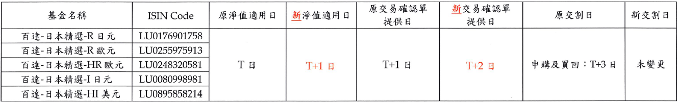 (一) 「百達-日本精選」變更交易申請截止日及結算日,如下說明: