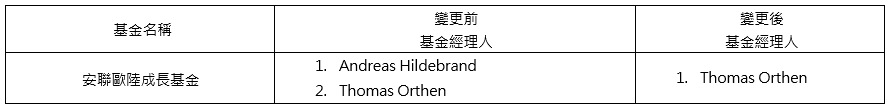 謹通知「安聯歐陸成長基金」將自民國114年10月31日起變更基金經理人: