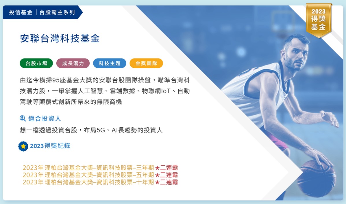 安聯台股團隊連續12年獲各大基金獎肯定中長期表現佳,投資才有續航力。安聯旗艦基金經歷過多年市場挑戰,無畏市場多變的風向,不斷獲得金獎肯定,展現中長期霸主風範,基金抱穩唯一指名!