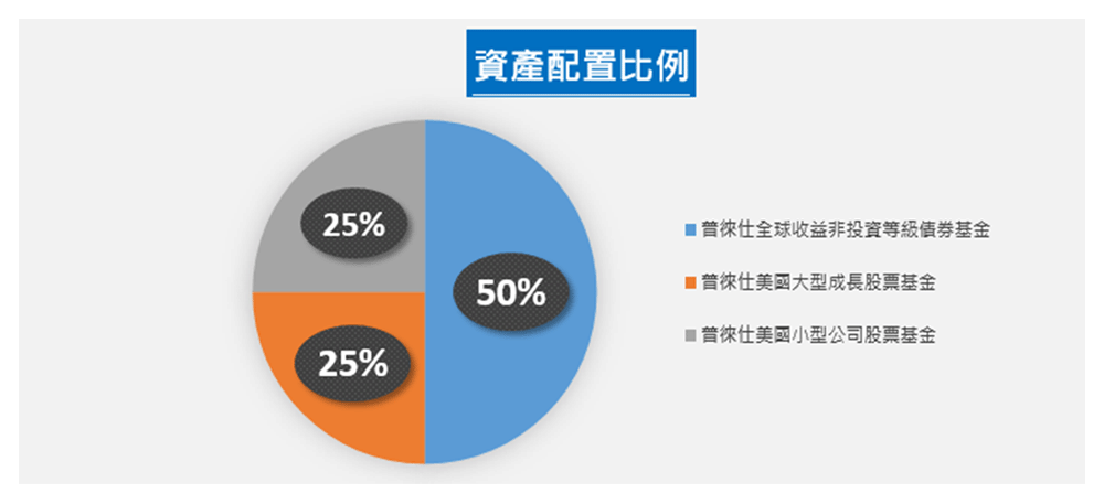 在基金標的配置方面,因子女教育基金是屬於長期的投資計劃,且繳付學費有一定的時間與金額限制,投資策略建議可採取較為保守的配置策略,例如50%資金投入穩健的固定收益商品,而另外50%資金投入積極型的標的。 以普徠仕(盧森堡)系列基金為例,可定期定額將50%資金投入全球收益非投資等級債券基金,另外50%資金則各投入一半至美國大型成長股票基金、美國小型公司股票基金。